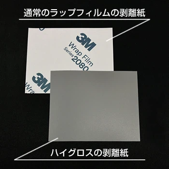 新商品のハイグロスは、通常のラップフィルムと製造工程が異なるため剥離紙が違います。
