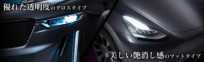 グロスタイプは優れた透明度、マットタイプは美しい艶消し感があり、どちらも高級感のあるフィルムです。紫外線カット機能で塗装を守り、ボディカラー本来の美しさを引き立たせます。